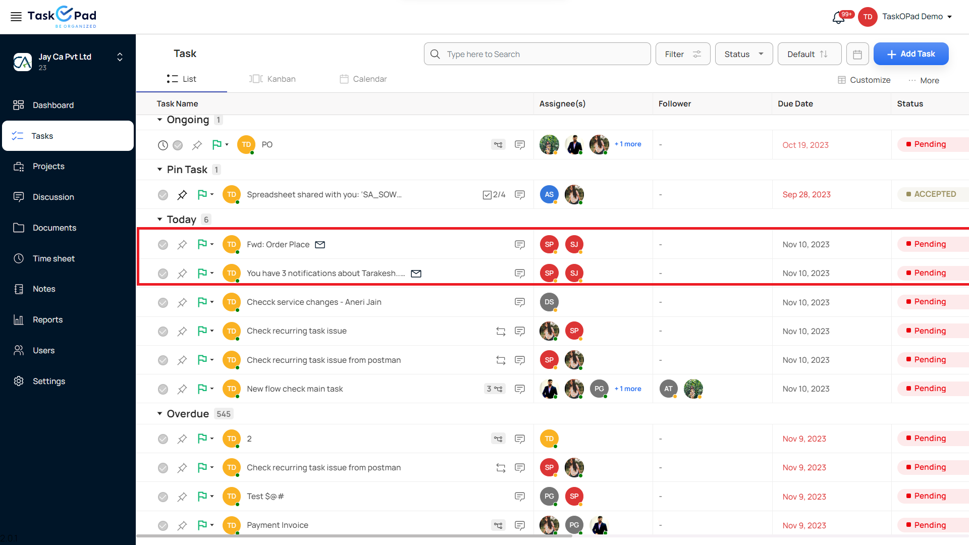 Provide a due date and assignee name. After submission, the task will be generated, and if it originates from an email, a mail icon will appear next to the task name.